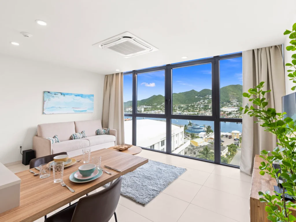 Experience luxury at apartment B-246 in Simpson Bay with breathtaking lagoon views and rooftop pool.