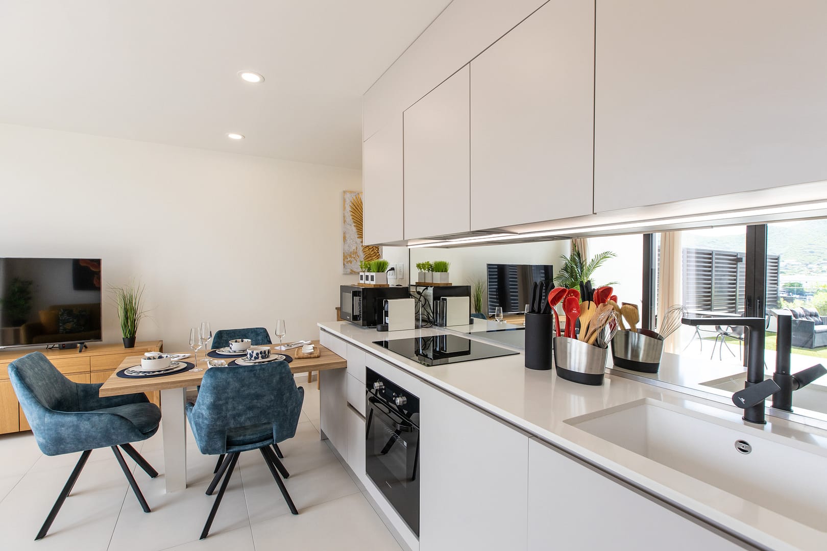 Cuisine : Une cuisine entièrement équipée comprenant tout le nécessaire — plaques de cuisson, four, lave-vaisselle, micro-ondes et plus encore.