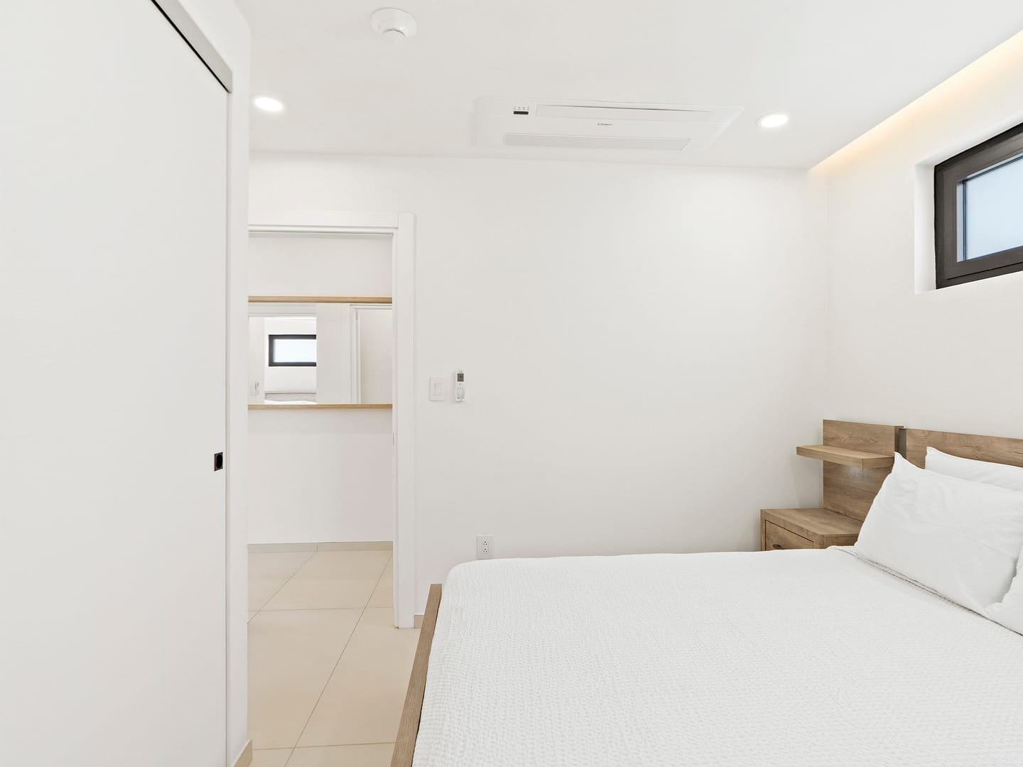 L’appartement dispose de deux chambres confortables reliées par une salle de bains privative, idéale pour les couples, les amis ou les familles voyageant ensemble.