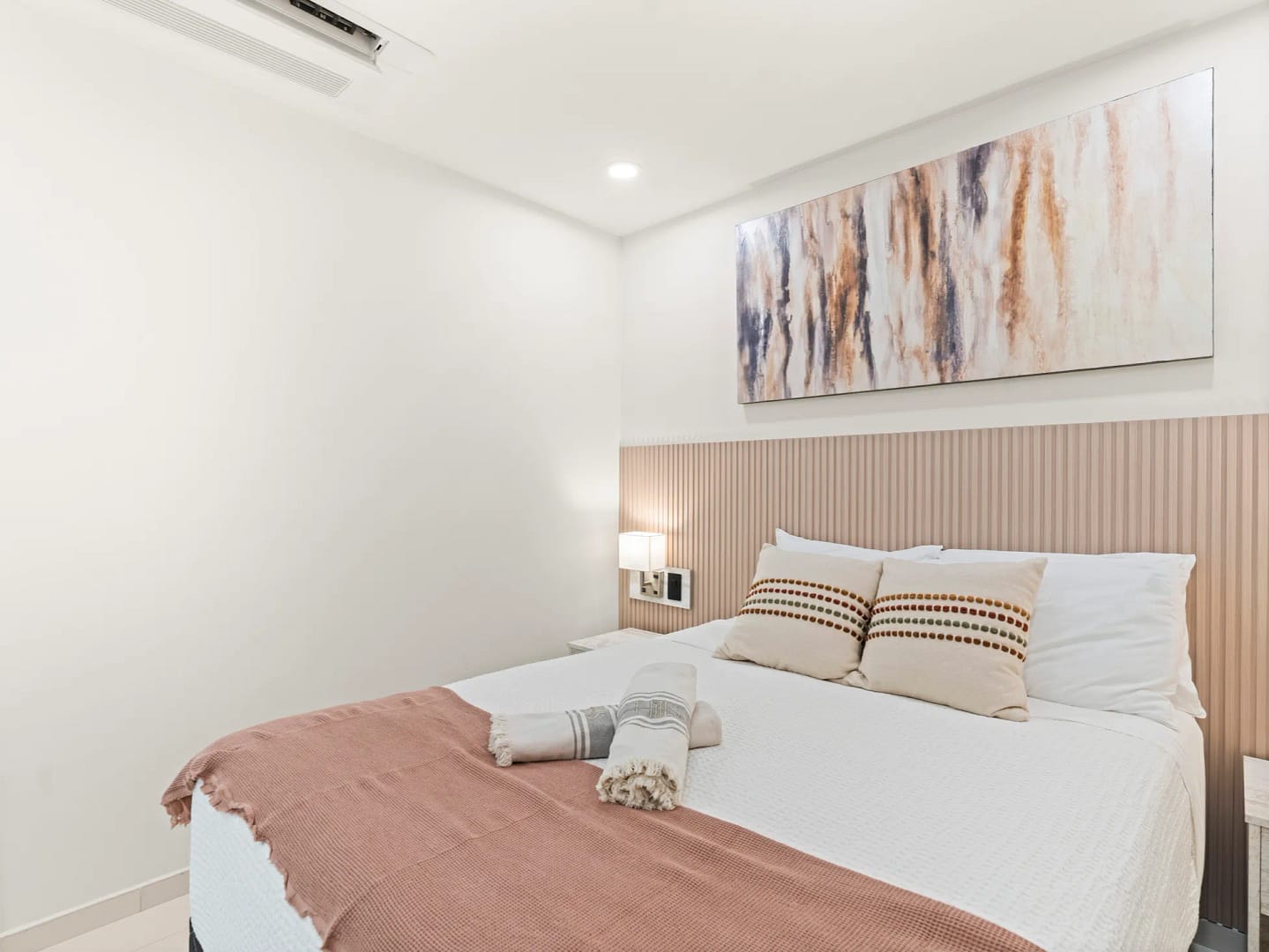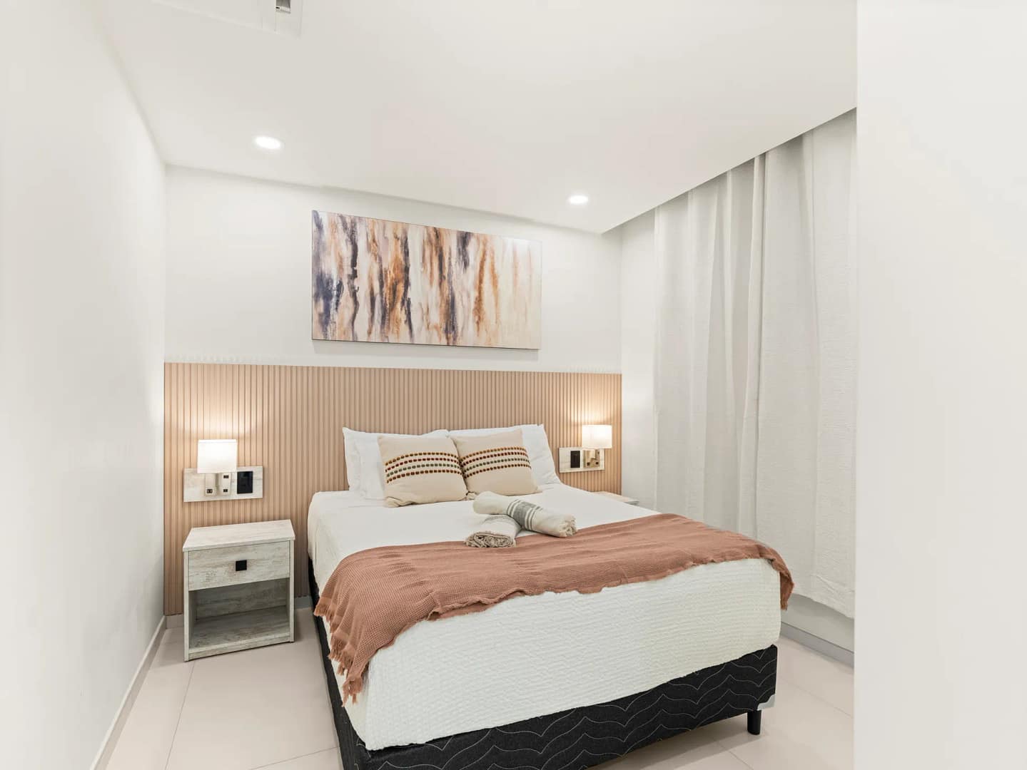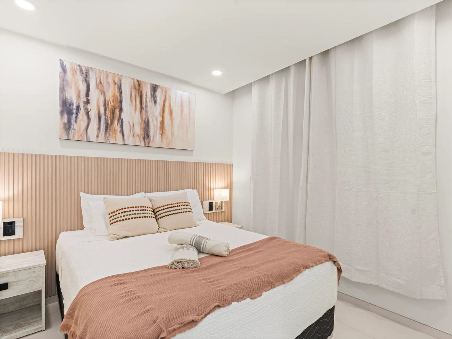 - Bedrooms: Aménagée avec soin, la chambre dispose d’un lit king‑size, de linge haut de gamme et d’un espace de rangement ample — idéale pour un repos profond et paisible.