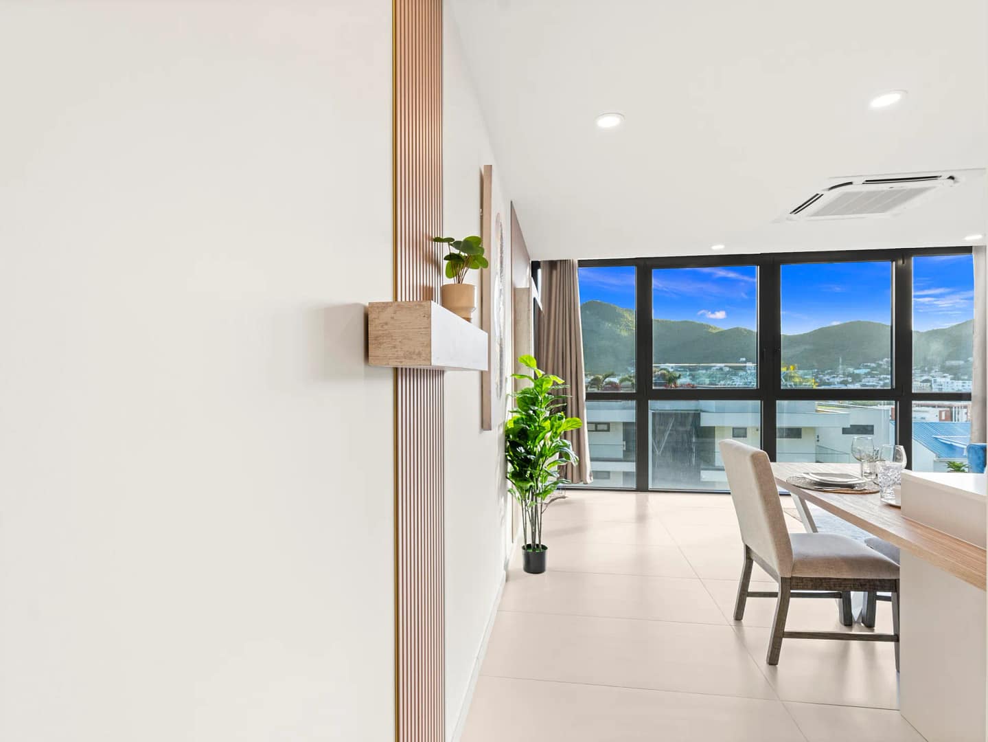 - Espace extérieur privé style terrasse (ou accès jardin) — un lieu merveilleux pour savourer un café le matin ou un cocktail en soirée, tout en profitant de la vue sur le lagon et les collines luxuriantes.