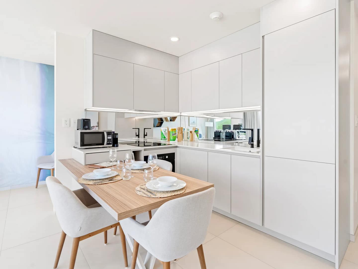 Cuisine moderne et entièrement équipée vous invitant à préparer de délicieux repas que vous pourrez savourer face au splendide lagon de Simpson Bay.