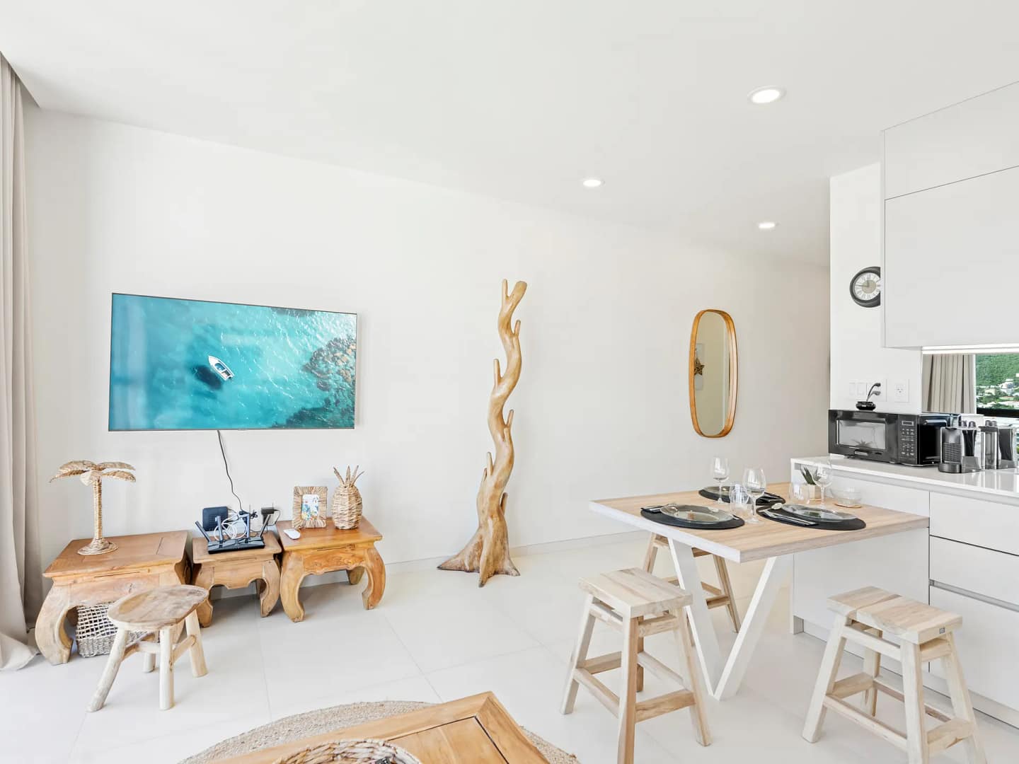 Alliant confort, élégance et vue spectaculaire sur le lagon, cet appartement deux chambres offre une escapade luxueuse pour familles, amis ou couples.