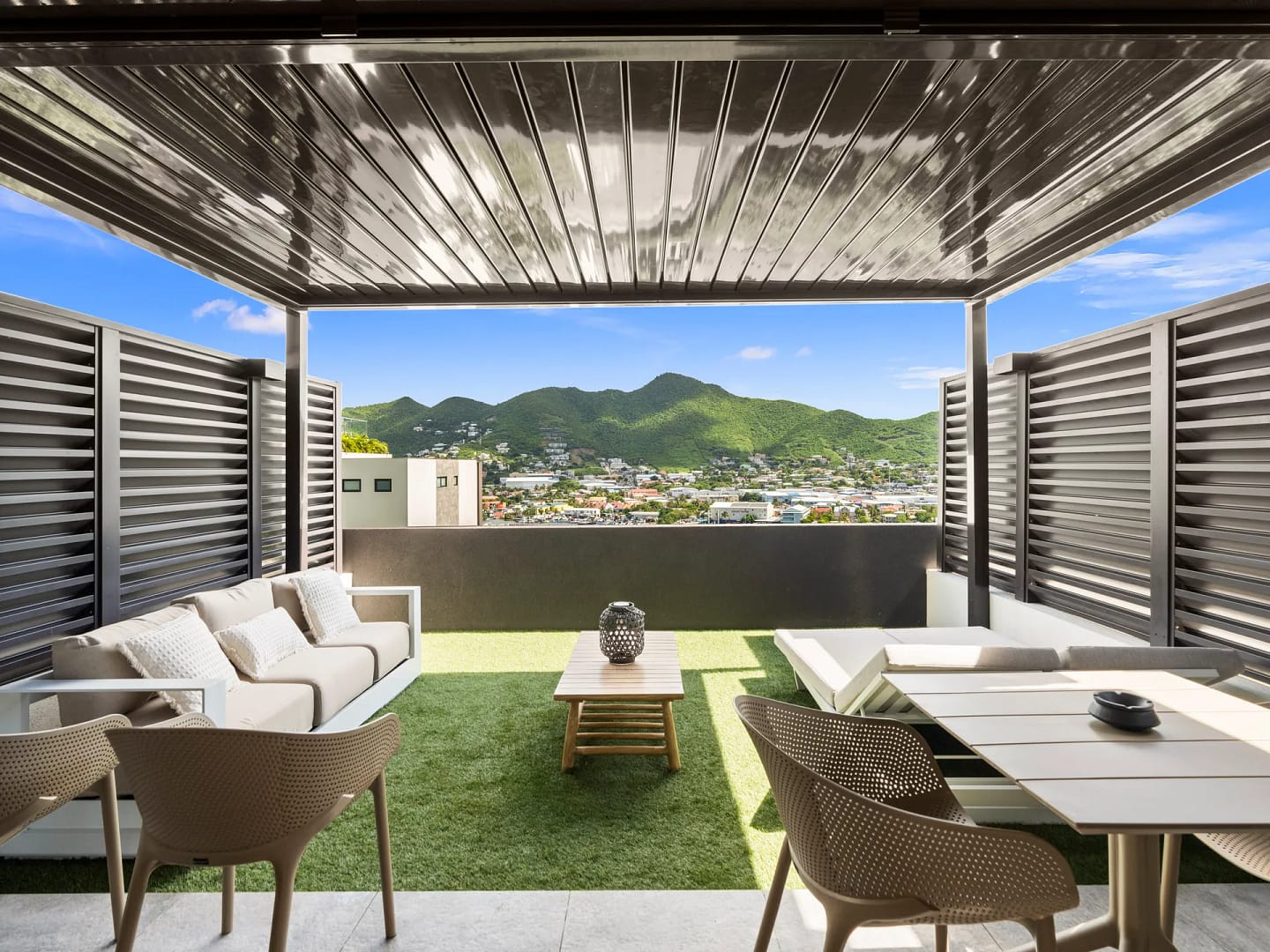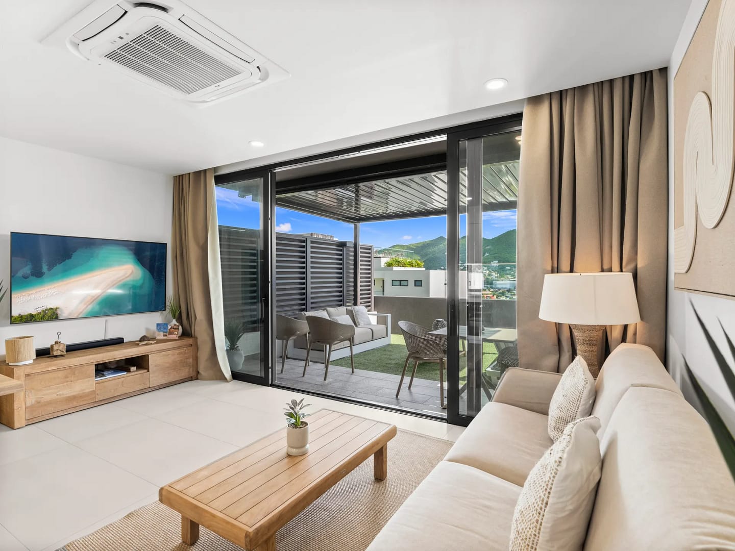 Alliant design contemporain, confort optimal et terrasse agréable, l’Appartement C301 avec vue sur lagon est le choix parfait pour couples ou voyageurs recherchant un séjour paisible et élégant à Sint Maarten.
