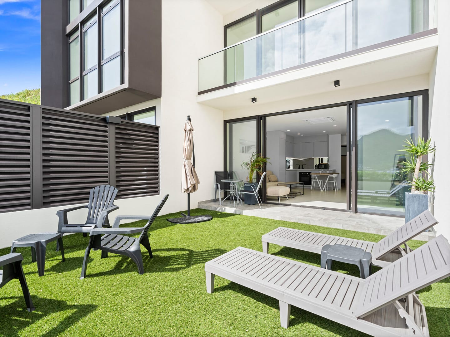 L’appartement dispose d’une chambre avec un lit king-size, d’un salon accueillant avec un canapé-lit, et d’une cuisine entièrement équipée. L’intérieur est propre, lumineux, et décoré avec simplicité, dans un style moderne avec quelques touches locales. La grande terrasse privée est un vrai plus, idéale pour profiter de l’extérieur en toute tranquillité, que ce soit pour un repas ou un moment de détente.