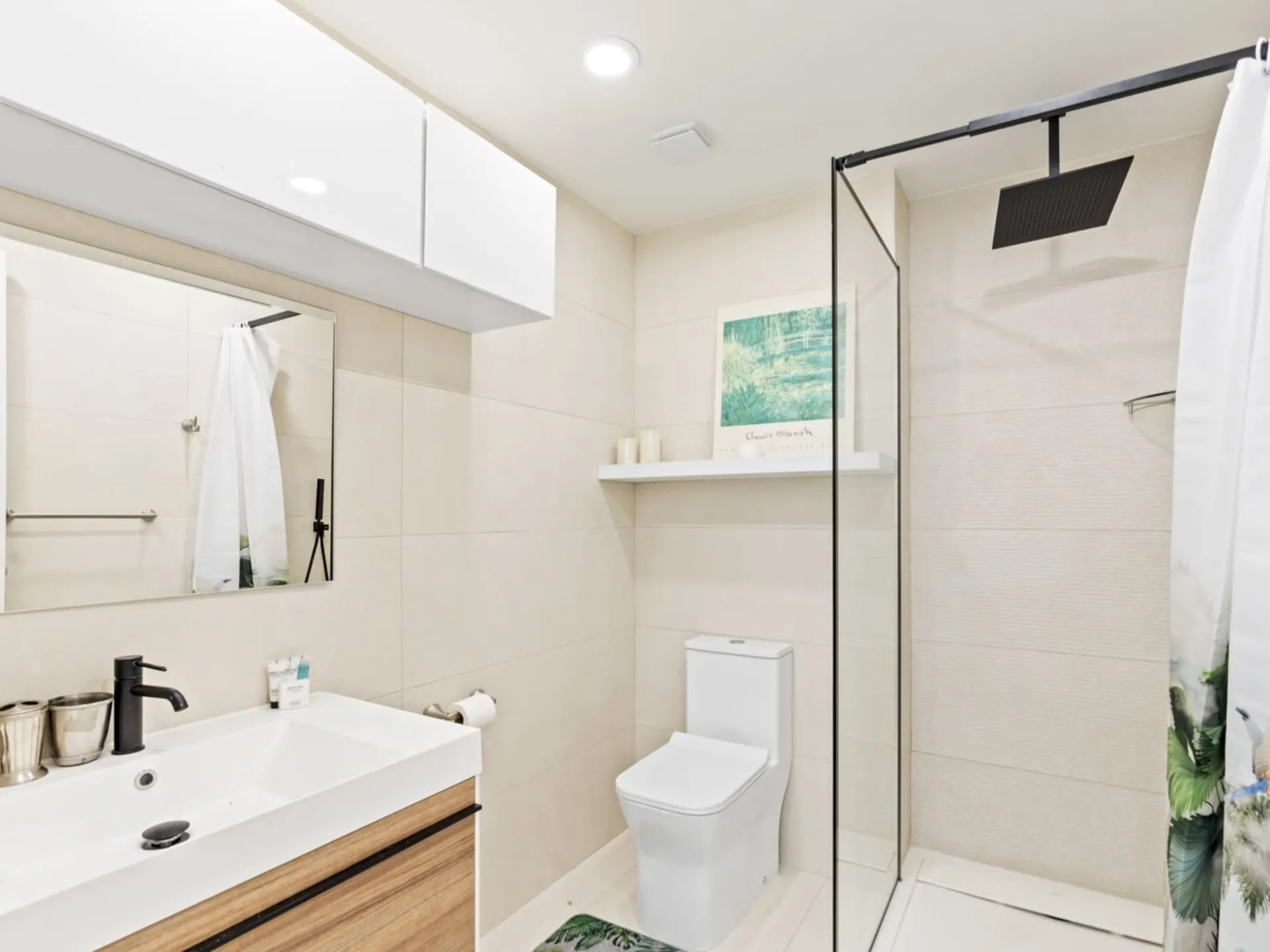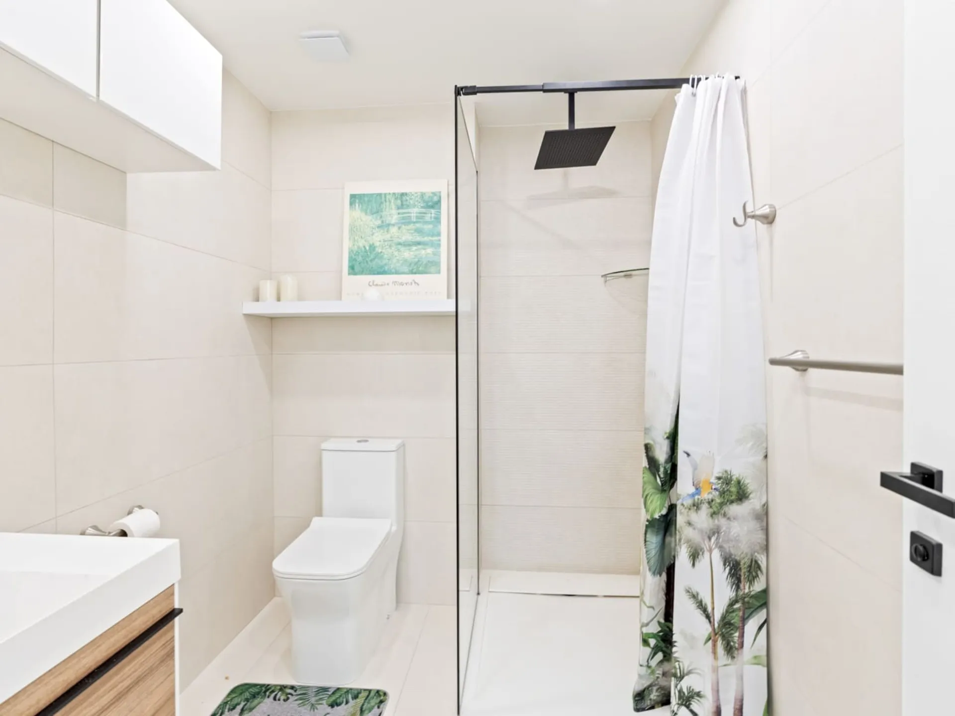 Salle de bain élégante avec finitions modernes et douche rafraîchissante.