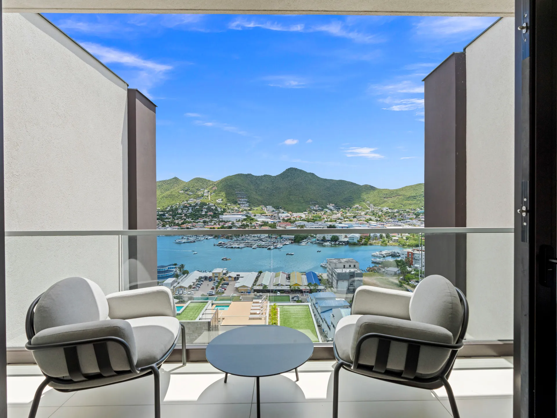 Perché au dernier étage du Bâtiment 3, l’appartement C-354 offre un luxe inégalé avec vue panoramique sur le lagon de Simpson Bay. Ce magnifique appartement d’une chambre allie sophistication moderne et confort ultime, en faisant le refuge parfait pour la détente et le ressourcement.
