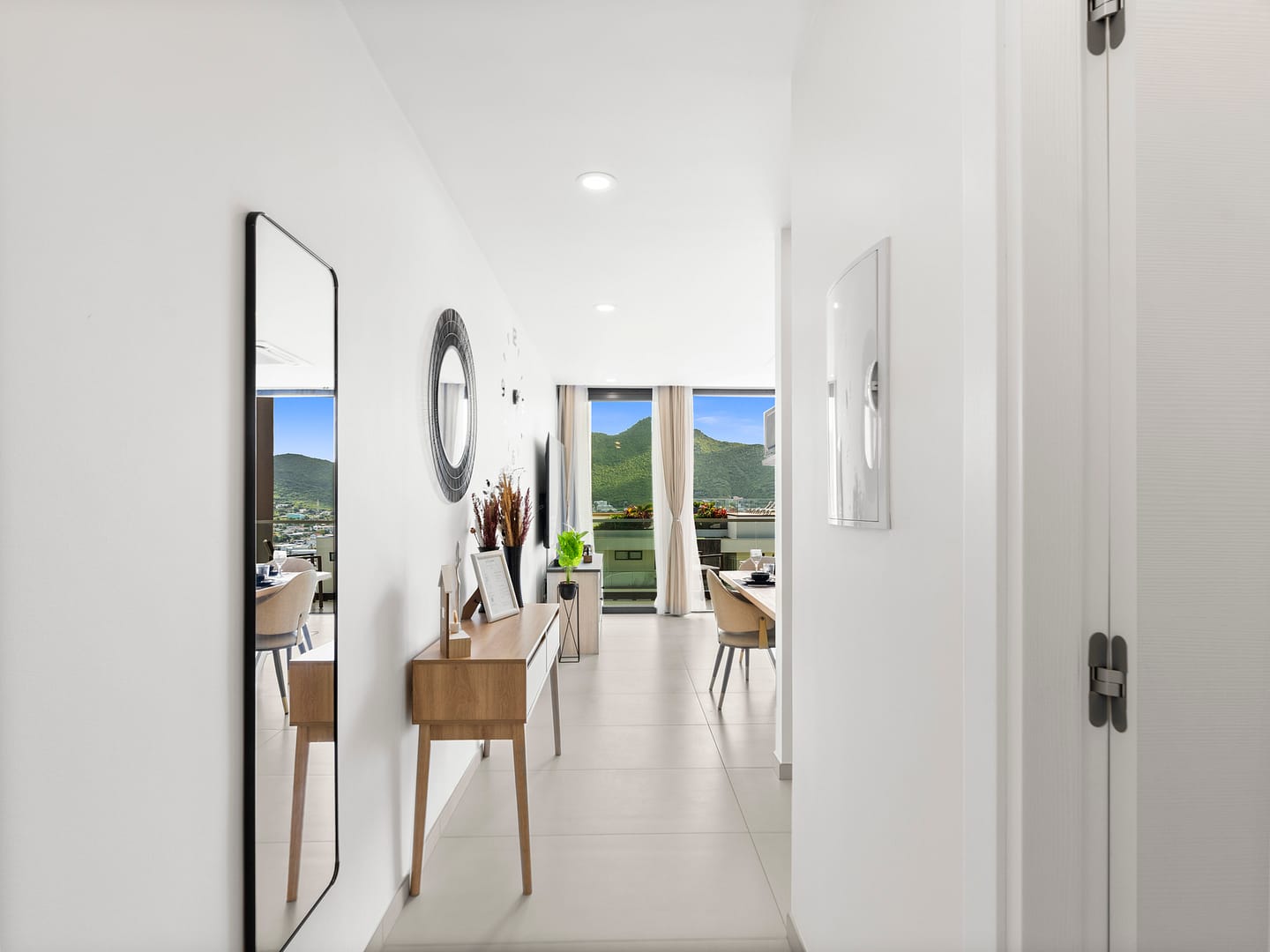 Découvrez l’appartement D-414, une superbe suite d’une chambre et une salle de bain, située au premier étage du Bâtiment 4 de The Hills Residence. Élégant et accueillant, cet espace combine à merveille confort moderne et sérénité insulaire, parfait pour un couple ou un voyageur solo.