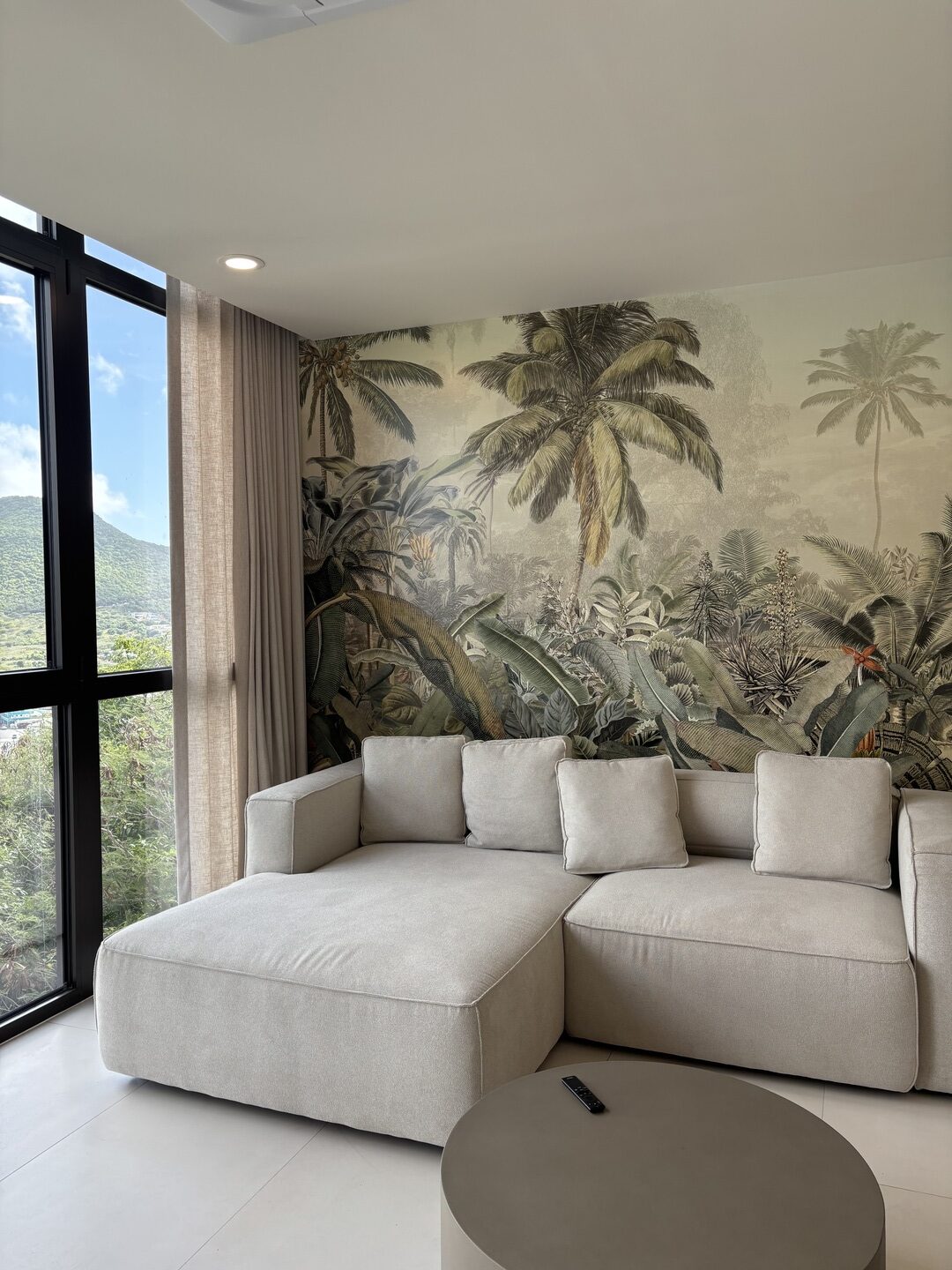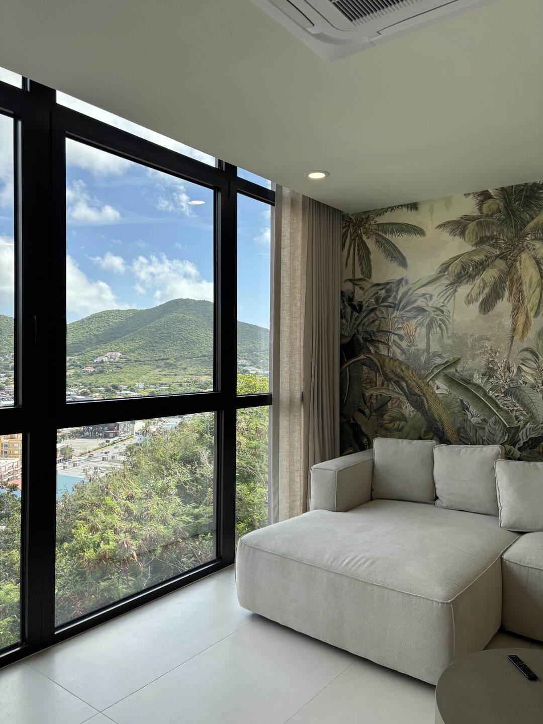 Salon lumineux et accueillant, offrant un espace agréable pour se détendre après une journée à Simpson Bay.