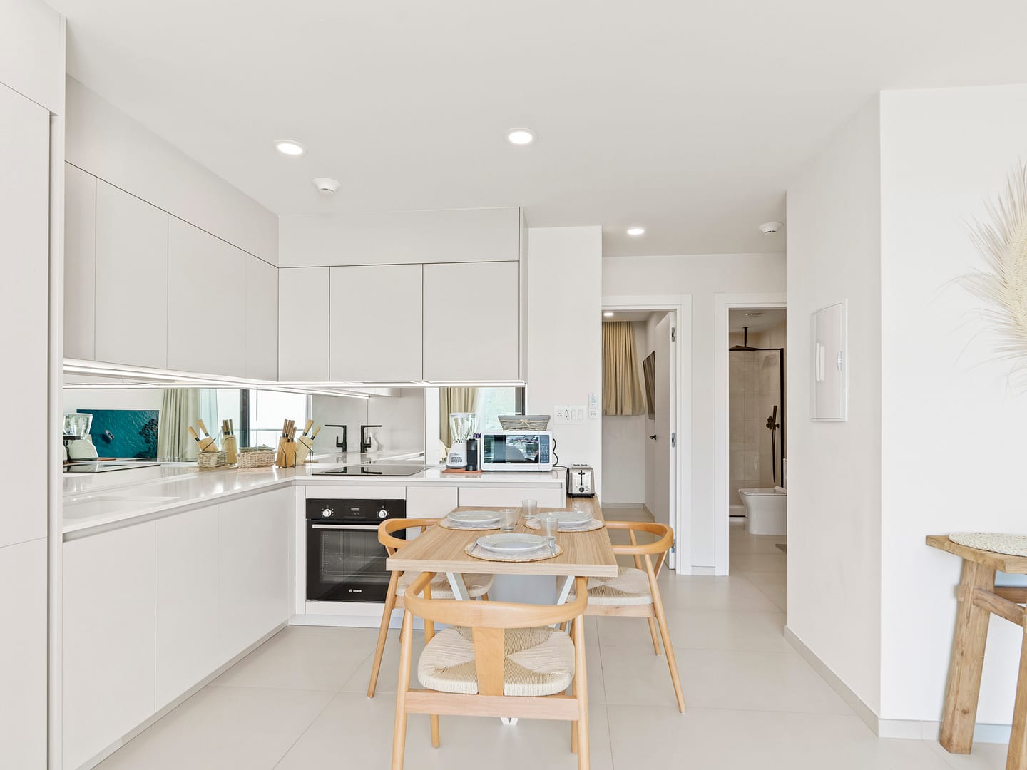 Cuisine entièrement équipée avec lave-vaisselle, lave-linge et tous les ustensiles essentiels