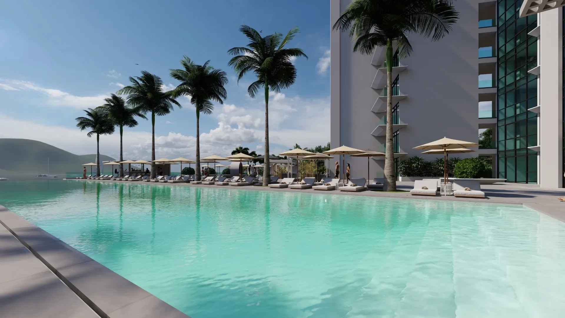 Piscine Olympique : Détendez-vous et rafraîchissez-vous avec une vue sur le lagon.