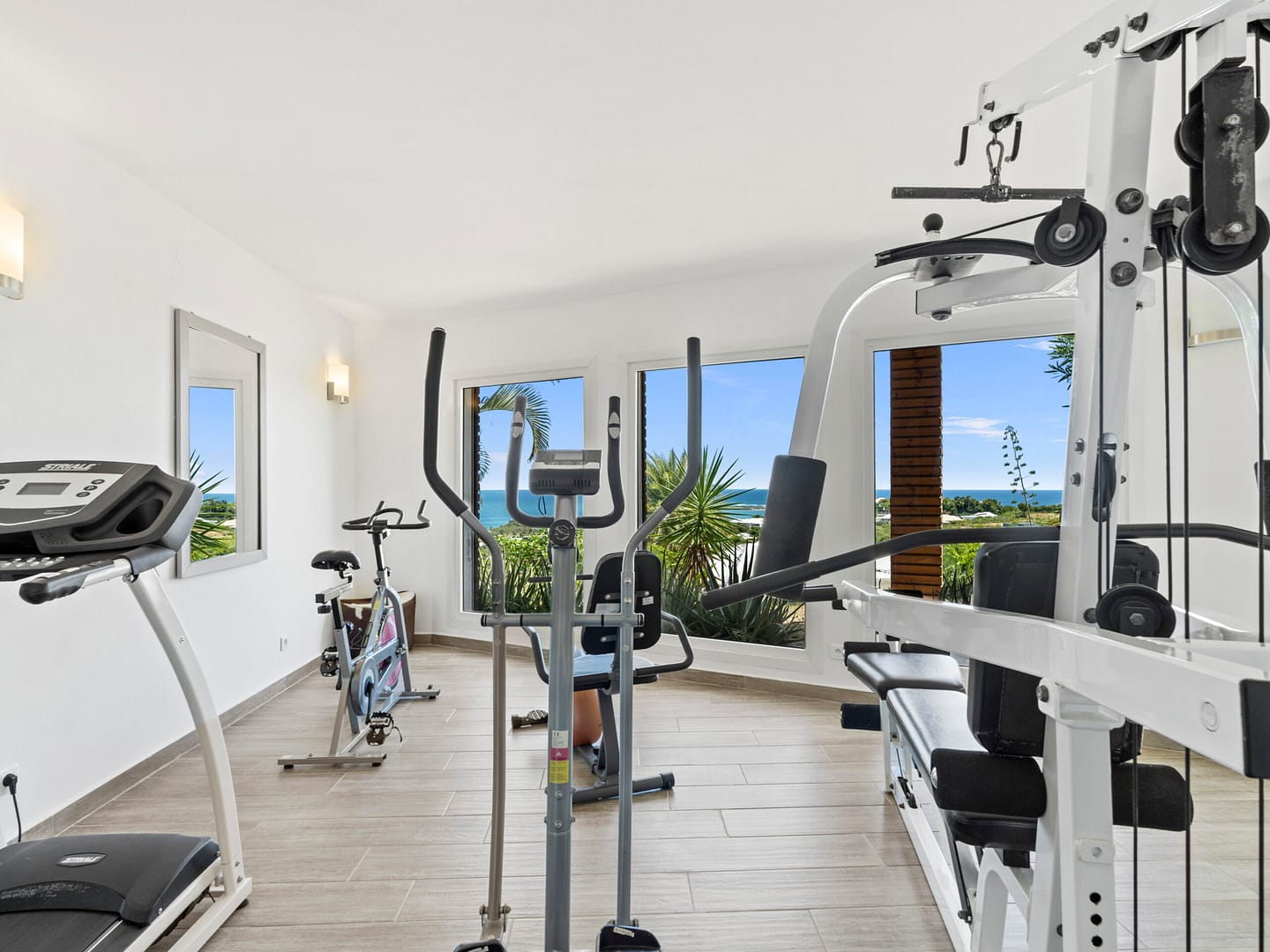 Pour les amateurs d’activités physiques, la villa comprend une salle de sport privée, un espace dédié à l’exercice et au bien-être à votre rythme. Ensuite, rafraîchissez-vous dans la luxueuse piscine privée de la villa, où vous pourrez vous prélasser au soleil tropical ou admirer la vue imprenable sur Orient Beach en contrebas.