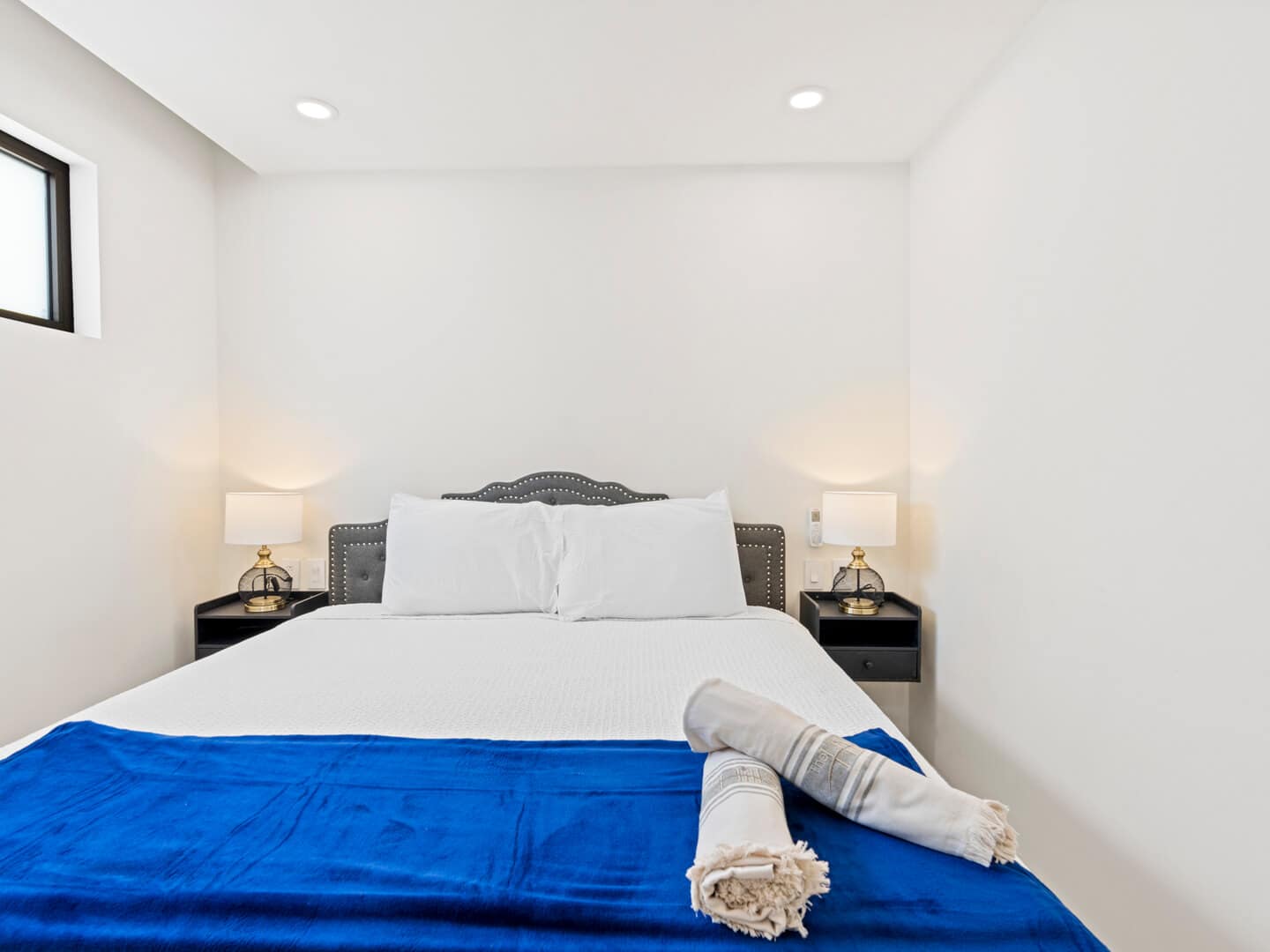 A serene bedroom with a king-size bed and sofa bed, complemented by high-quality linens and tasteful décor — perfect for a restful night’s sleep.