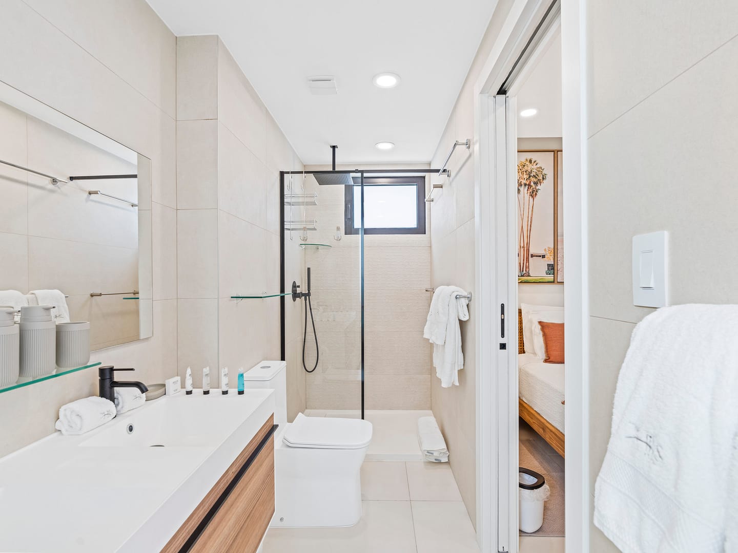 Welcome to Apartment B-221 at The Hills Residence in Simpson Bay, Sint Maarten, your sophisticated lagoon escape. Located on the second floor, this elegant two-bedroom apartment spans 75m² and features a panoramic glass wall offering breathtaking views of the lagoon — the perfect combination of luxury and tranquility.