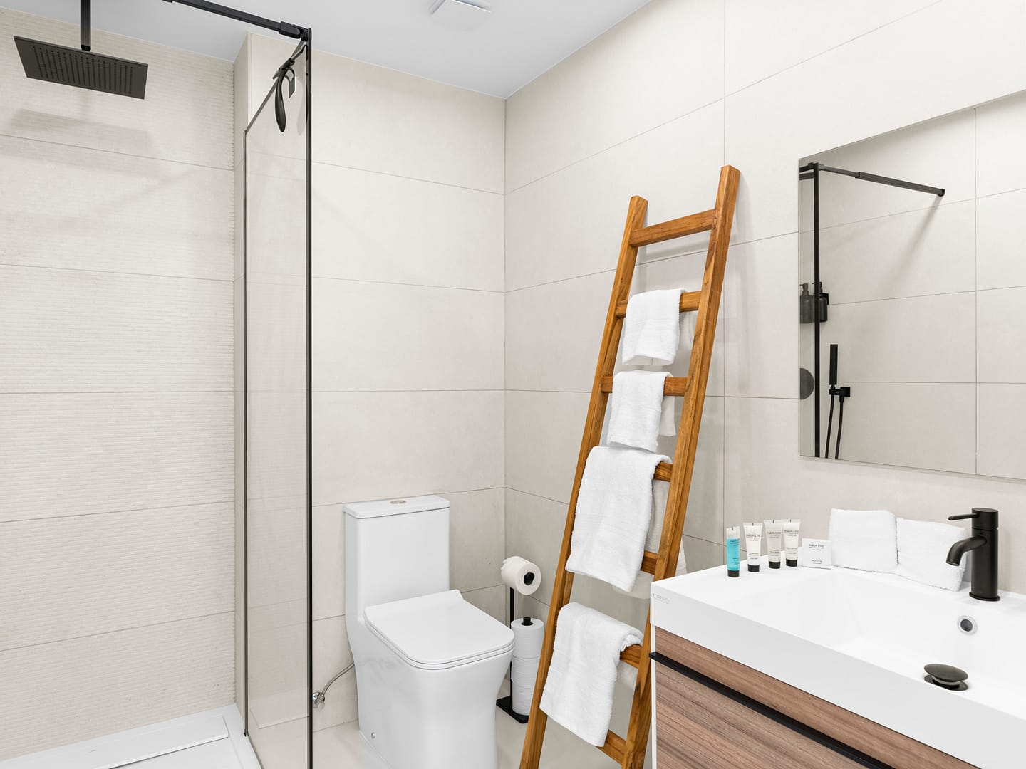 As a guest, enjoy access to The Hills Residence’s rooftop pool and jacuzzi, where you can relax and take in panoramic views of the island. The secure, gated complex also offers on-site parking and a prime location just minutes from beaches, restaurants, shops, the marina, and lively nightlife.