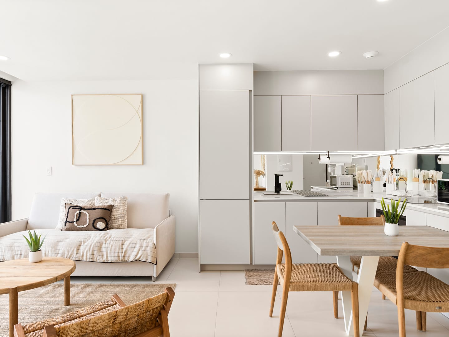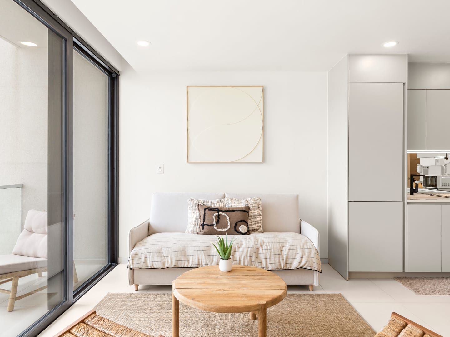 Inside, you’ll enjoy a comfortable bedroom for restful nights, a sleek modern bathroom, and a bright, open living area designed for your comfort. The fully equipped kitchen gives you the freedom to prepare meals at your leisure, whether it’s a quick breakfast or a romantic dinner.
