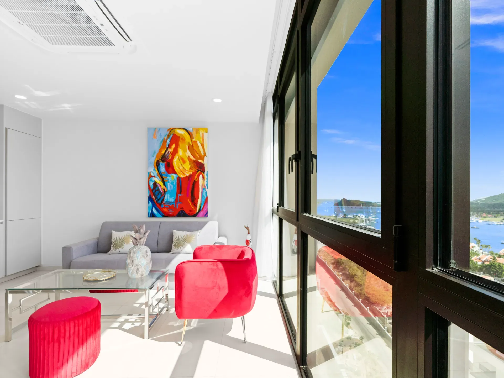 Perched on the top floor of Building 3, Apartment C-355 offers unparalleled luxury with sweeping views of the Simpson Bay Lagoon. This beautifully designed one-bedroom apartment combines modern sophistication with ultimate comfort, making it the perfect retreat for relaxation and rejuvenation.