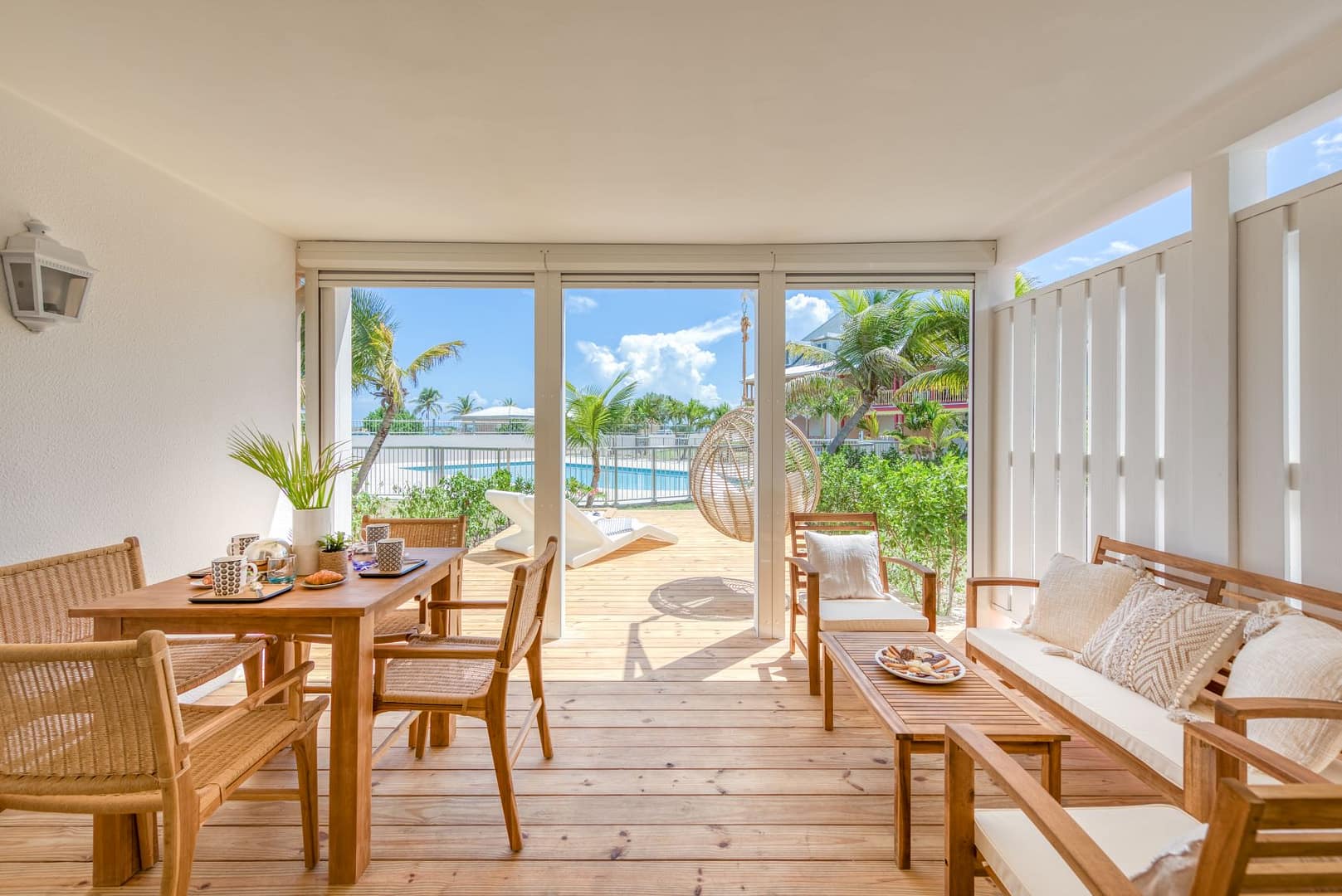 Nestled just behind the pristine sands of Orient Bay Beach, this charming one-bedroom apartment is designed for relaxation and convenience. With air conditioning to keep you cool and a Nespresso machine for your morning brew, every detail is curated to make your stay unforgettable.