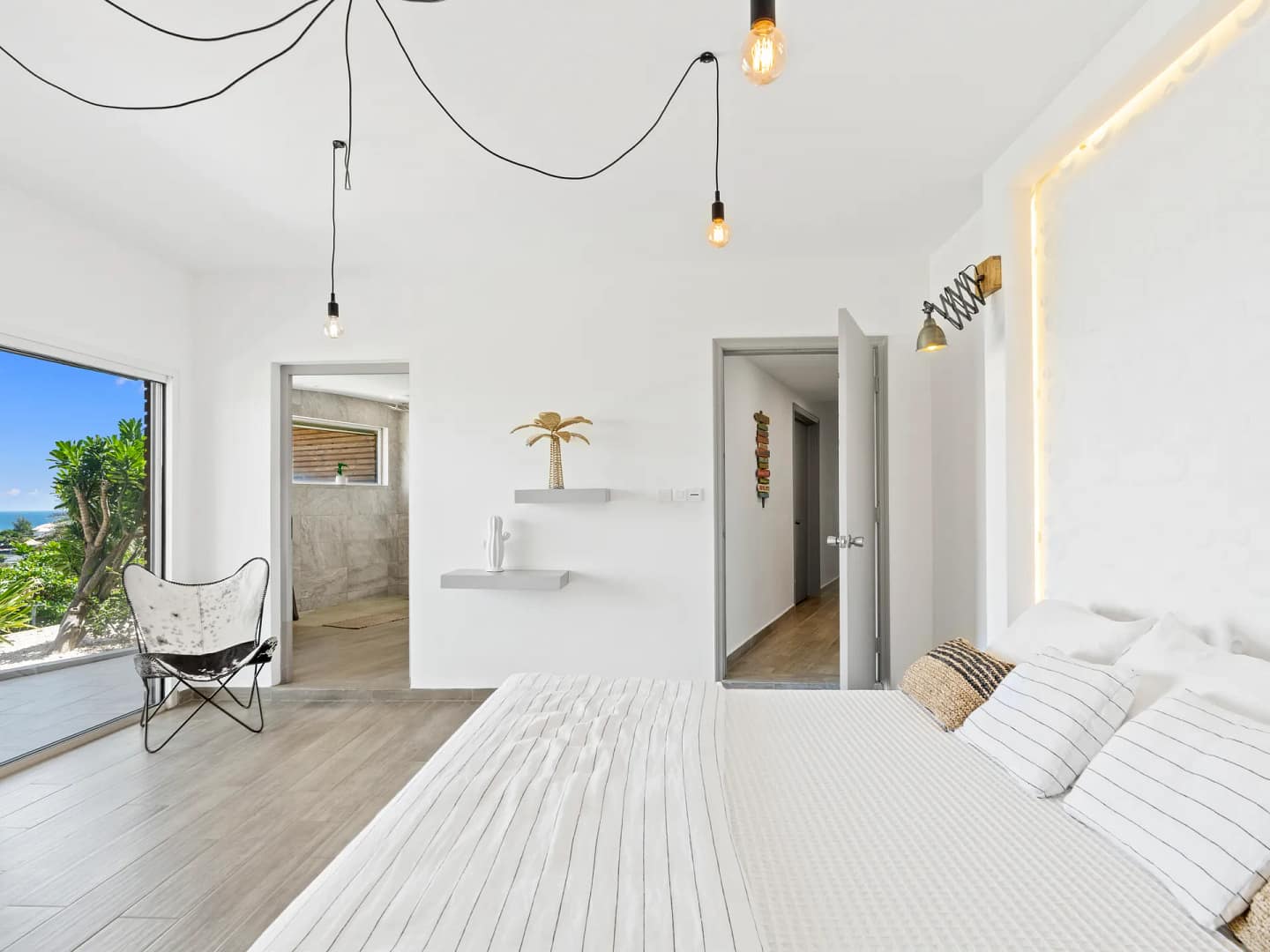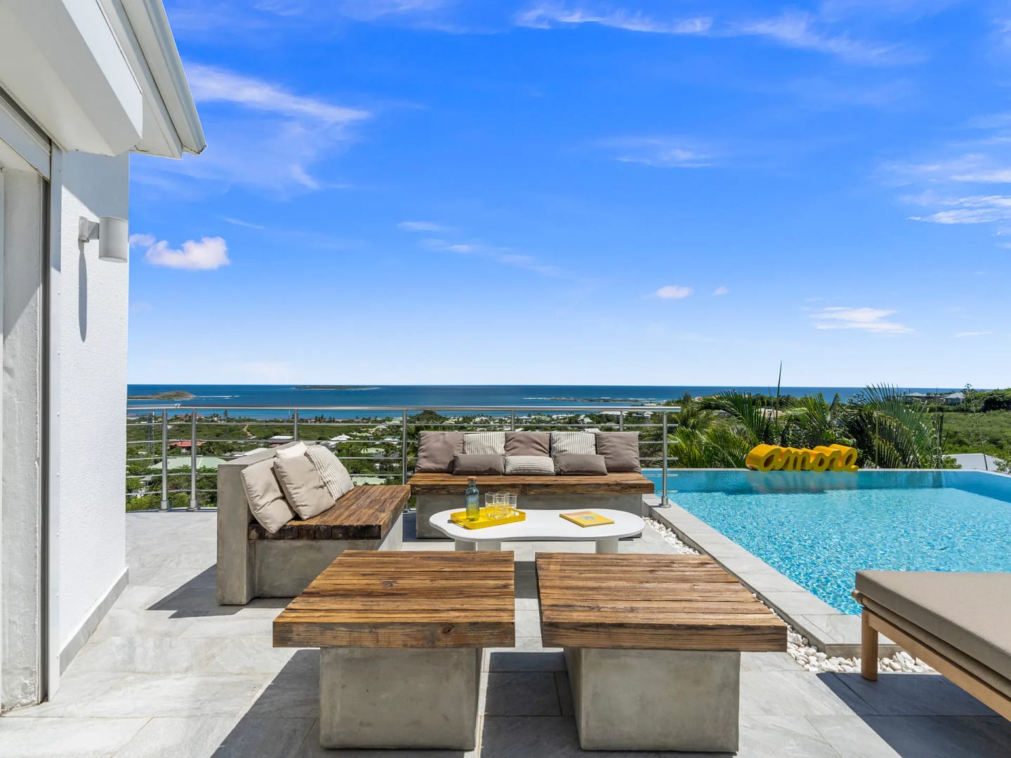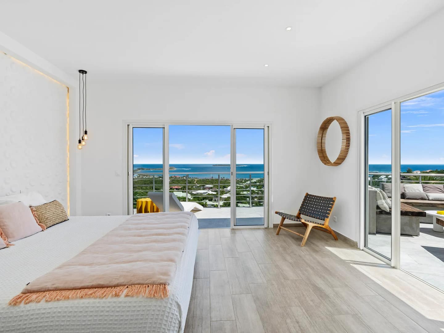 Situated at the top of the hill, this luxurious villa provides a panoramic spectacular view of Orient Beach. Imagine waking up to vibrant sunrises over the turquoise waters or sipping a glass of wine on the terrace as the sun sets over the horizon. This breathtaking scenery sets the tone for a truly serene and memorable stay.