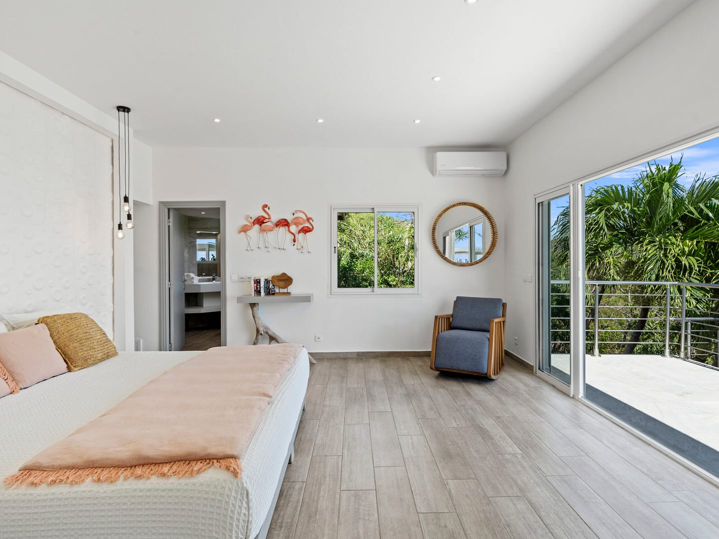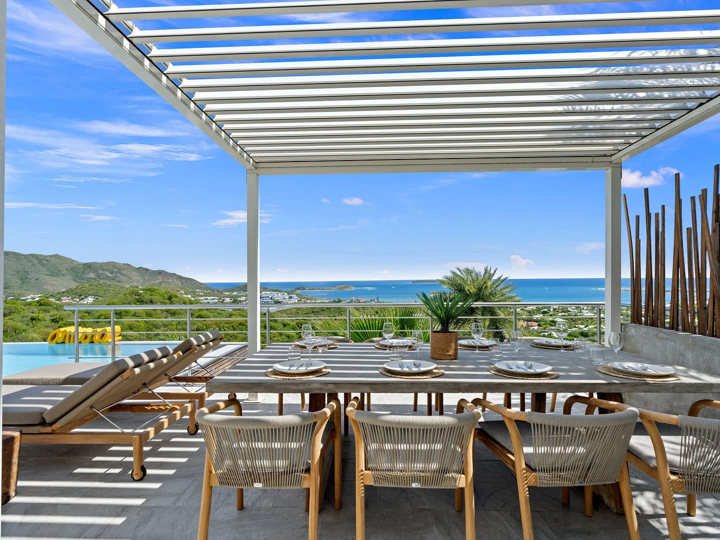 The villa also boasts a fully equipped private sports room, perfect for keeping up with your fitness routine while away. Afterward, unwind on the spectacular modern terrace, complete with pergolas, a barbecue, and breathtaking views of the Caribbean Sea.