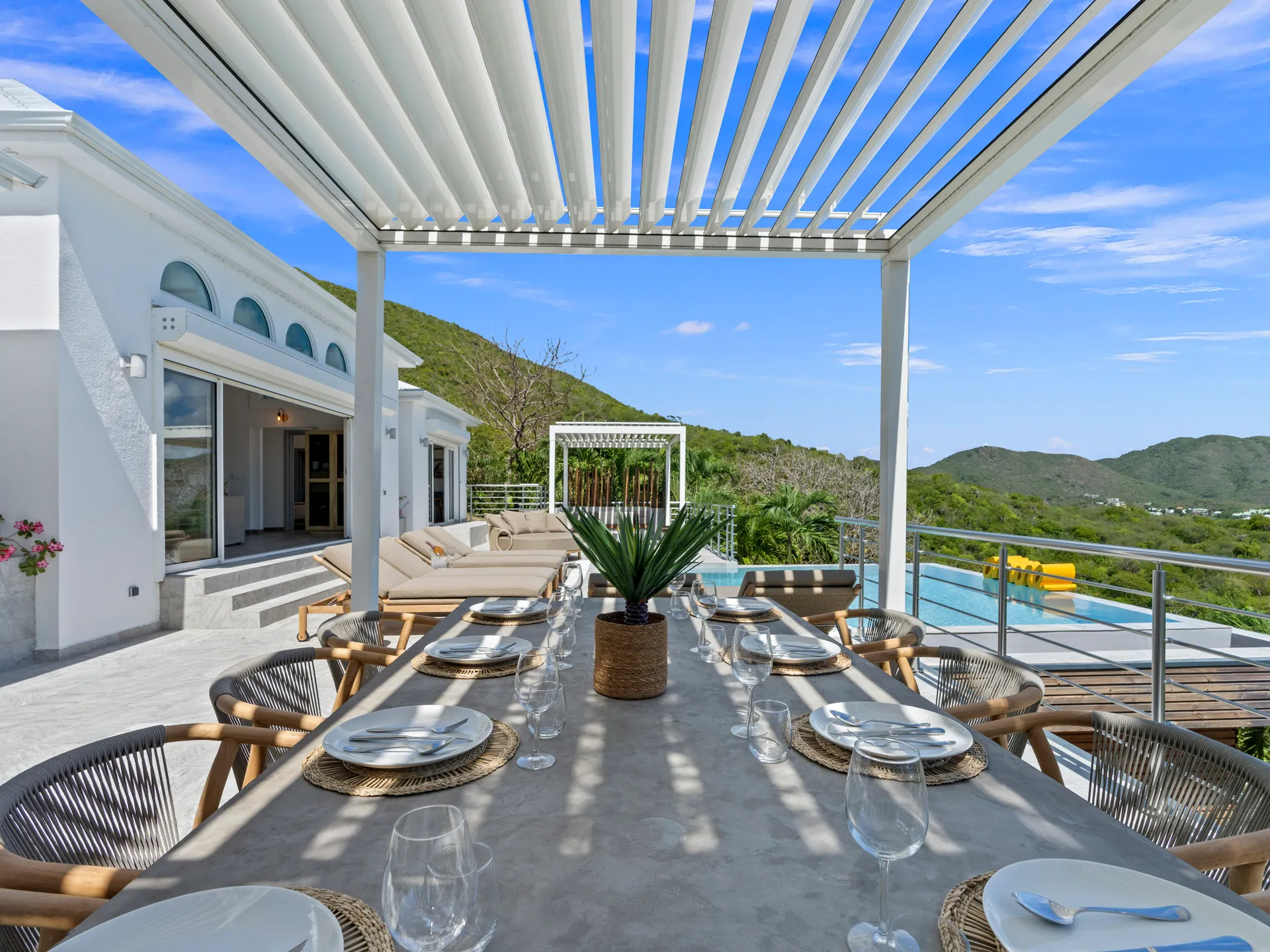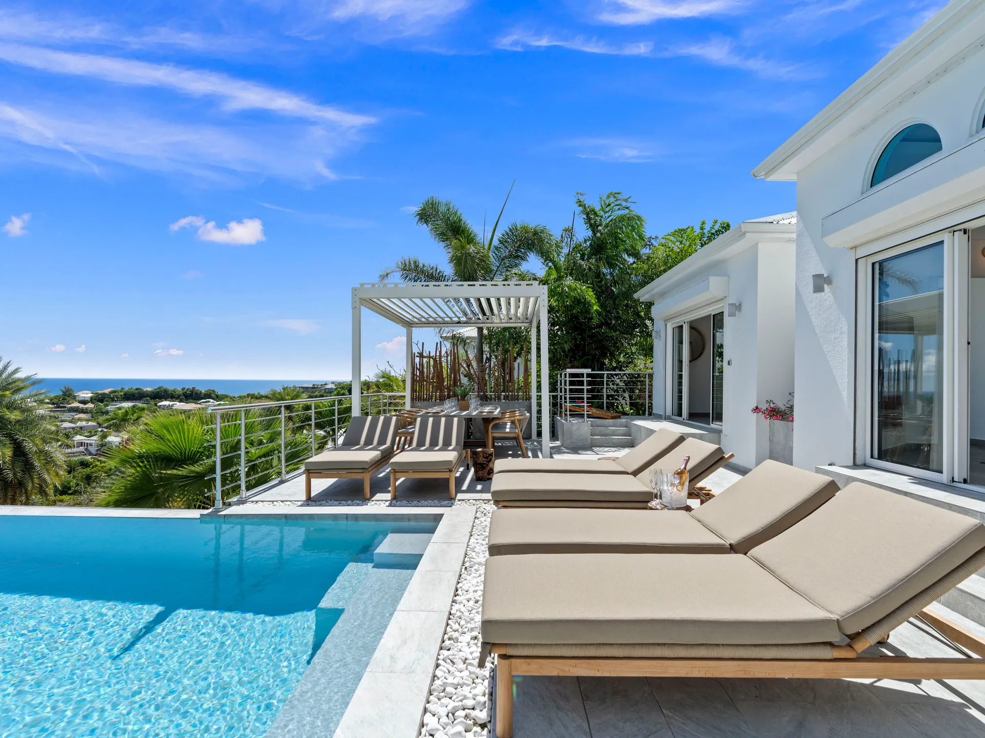 Located in an exclusive gated residence overlooking the sparkling waters of Orient Bay, Villa Turquoze is a stunning 4-bedroom vacation villa offering the ultimate in comfort, elegance, and privacy. Perfectly designed for a relaxing getaway, it combines sophisticated design with high-end amenities.